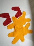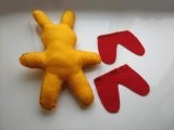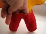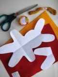 -POZOR!! Přední stranu kalhot sešijte celou, zadní stranu jen po obvodu a nesešívejte ani pas! Aby jste tam mohli dát prsty, a králíček "mohl chodit"